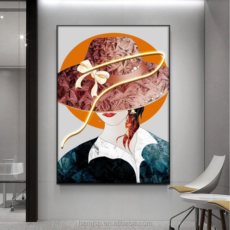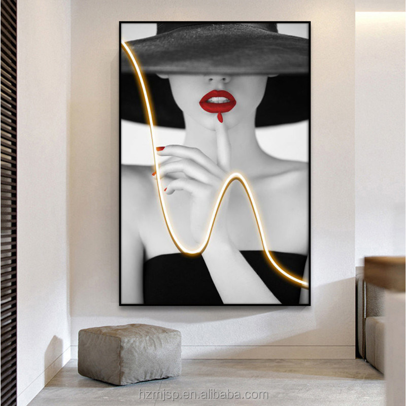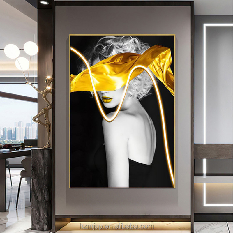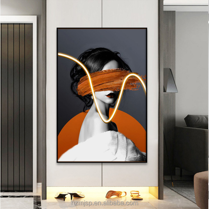 سبک مدرن ورودی تزئینی روشن کننده تصویر نقاشی دیواری نقاشی پرتره روشن چاپ شده بر روی پارچه با نقاشی LED سه بعدی