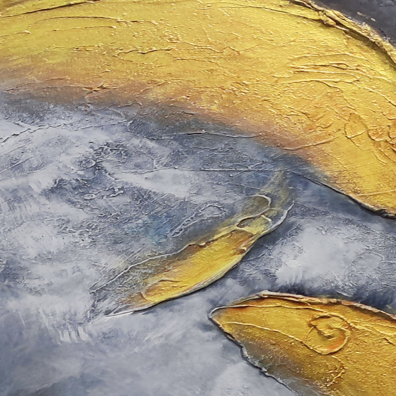 نقاشی روغن متوسط و روش چاپ 6 رنگی استفاده شده برای نقاشی دستی ماهی های طلایی هنر ورق طلا هنر اتاق نشیمن 2