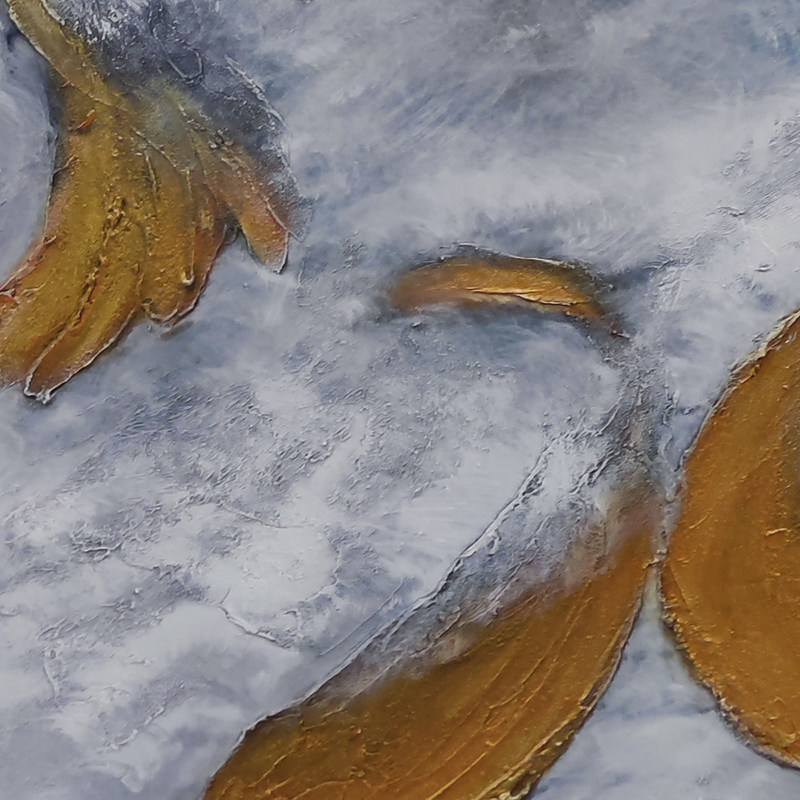 نقاشی روغن متوسط و روش چاپ 6 رنگی استفاده شده برای نقاشی دستی ماهی های طلایی هنر ورق طلا هنر اتاق نشیمن 3
