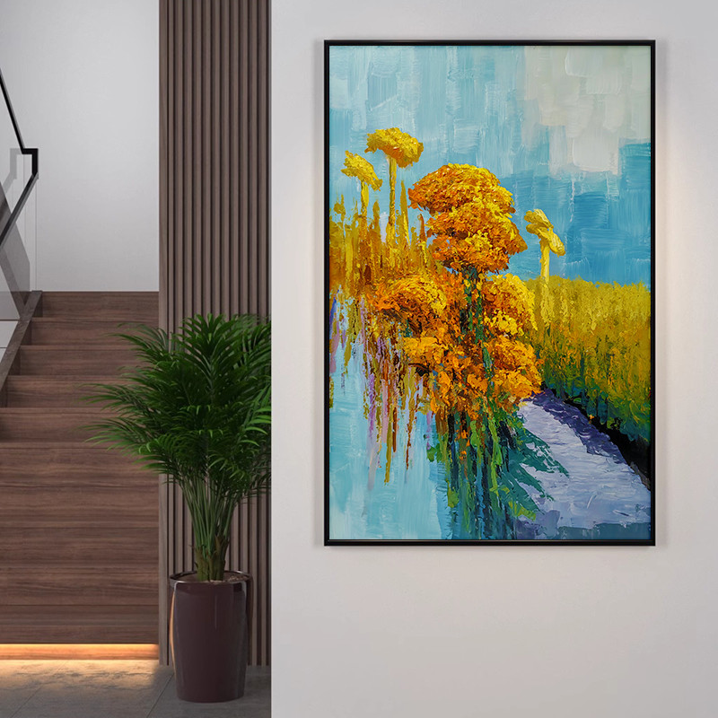 نقاشي روغن دستي رنگ آمیزی گل های طلایی مدرن رنگارنگ دیوار آویزان برای اتاق نشیمن دکوراسیون خانه 6