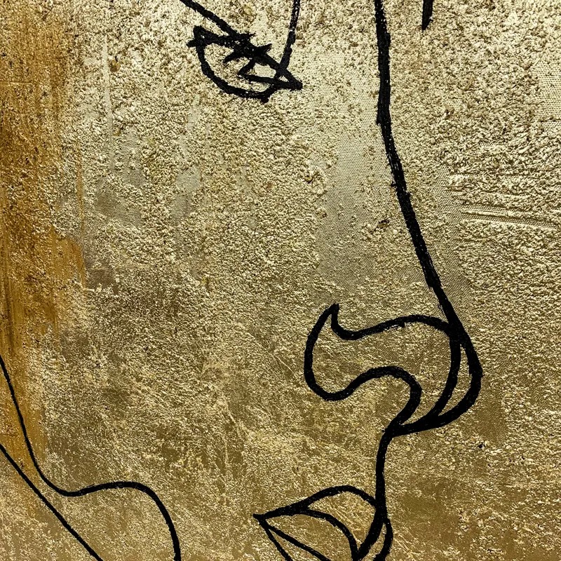 دکوراسیون منزل با طرح انتزاعی، ورق طلا، بافت خطی دست نقاشی، نقاشی رنگ روغن، تزئینات دیواری بوم